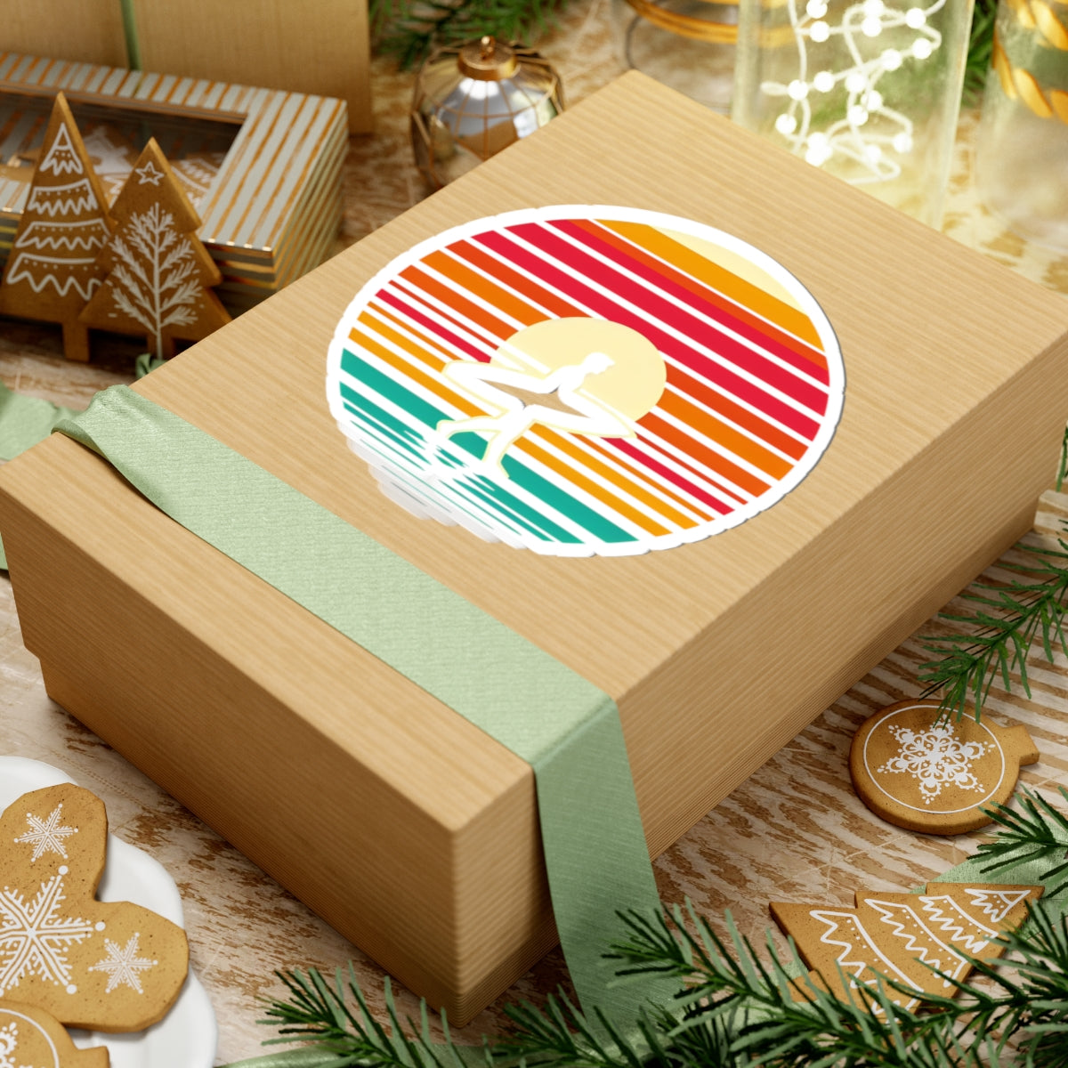 Coastal Stride Sticker | Retro Sunset with Surfer Silhouette – Bold Minimalist Beach Walk Graphic Vinyl Sticker