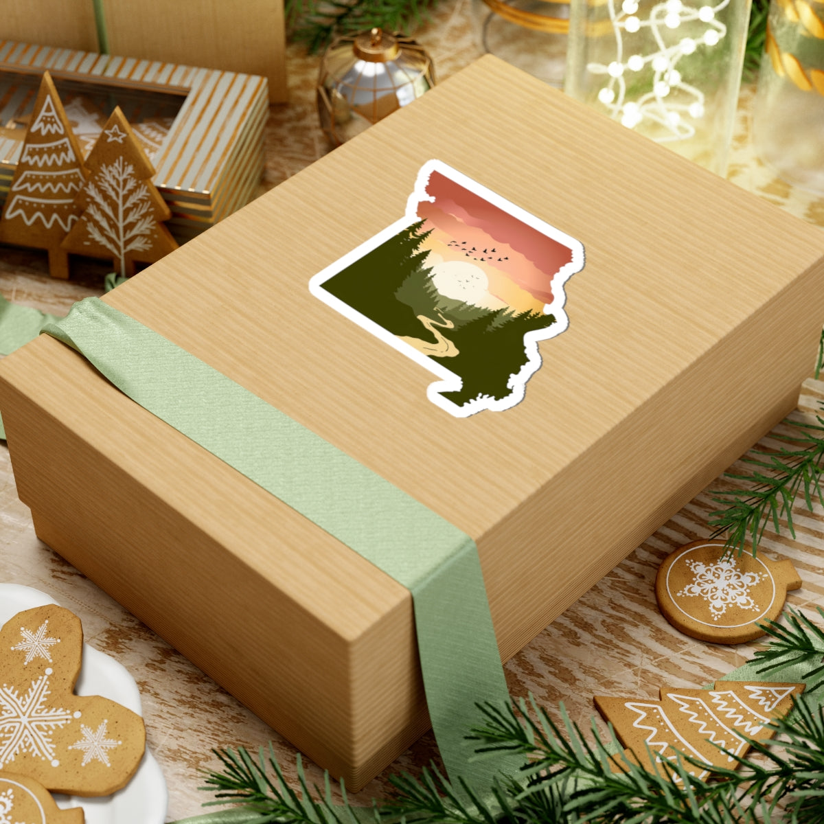 Missouri Wilderness Sticker | Sunrise Trail and Pines in State Silhouette – Ozark Forest Adventure Vinyl Sticker