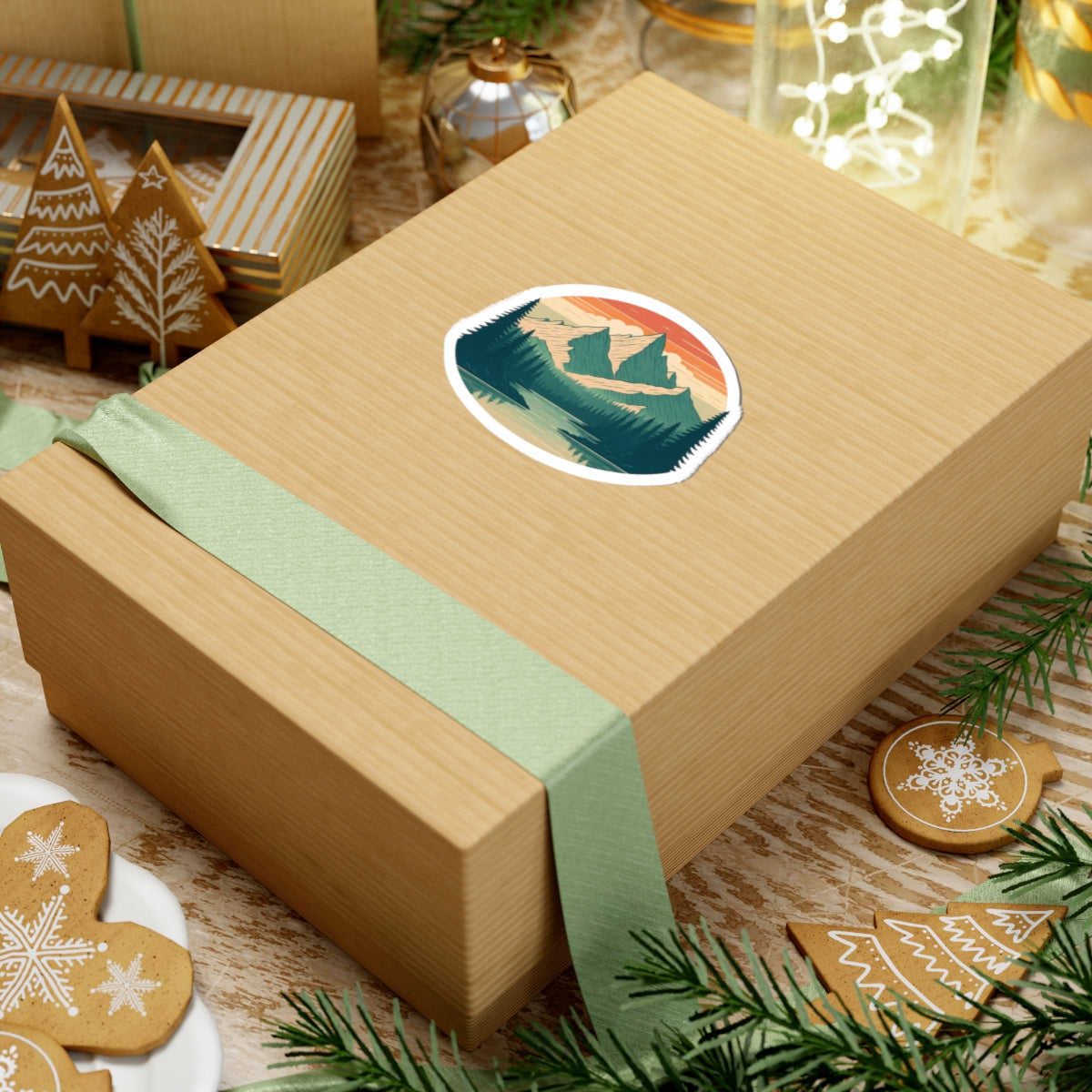 Mountain Echo Sticker | Sunset Peak and Pine Forest Scene – Retro Wilderness Adventure Vinyl Sticker