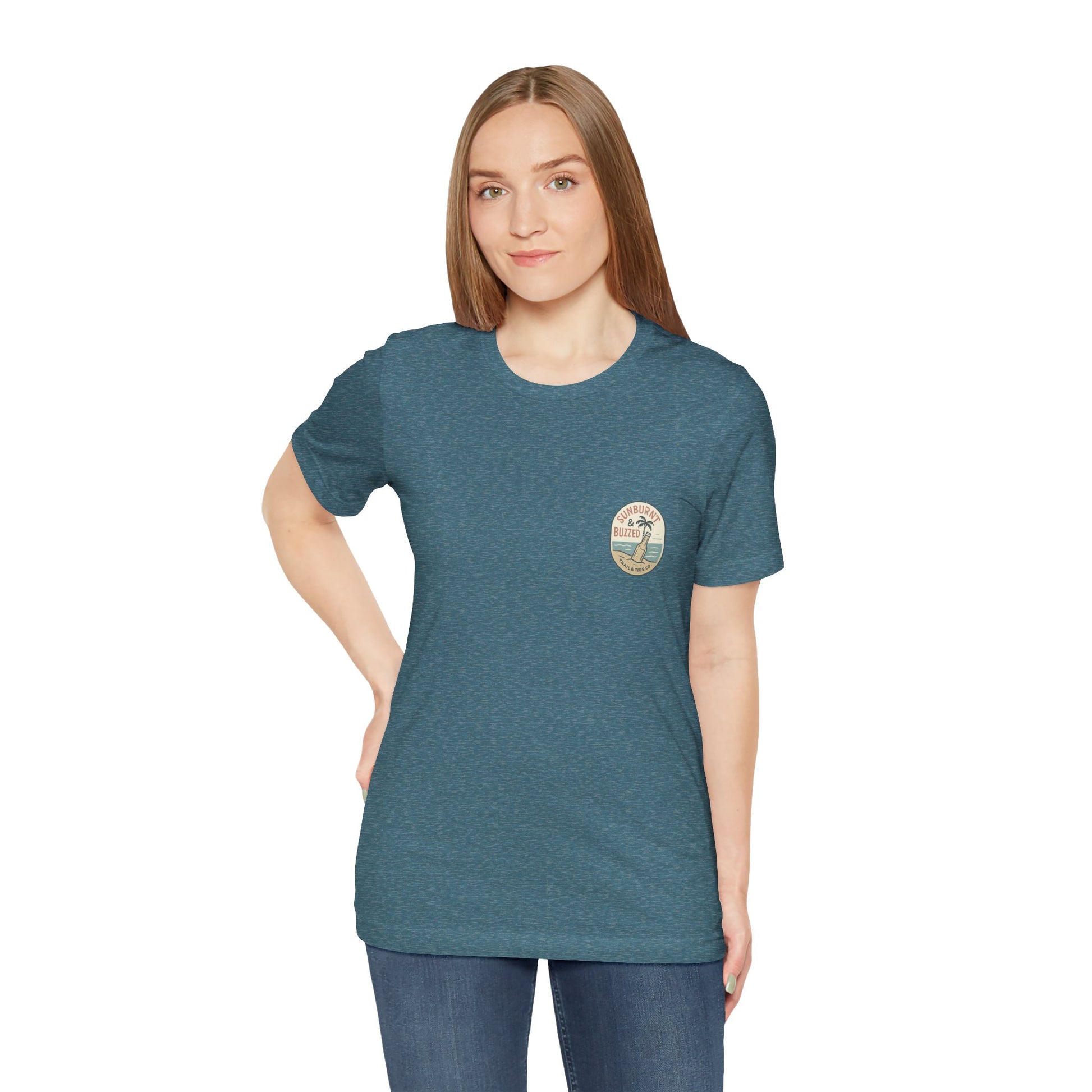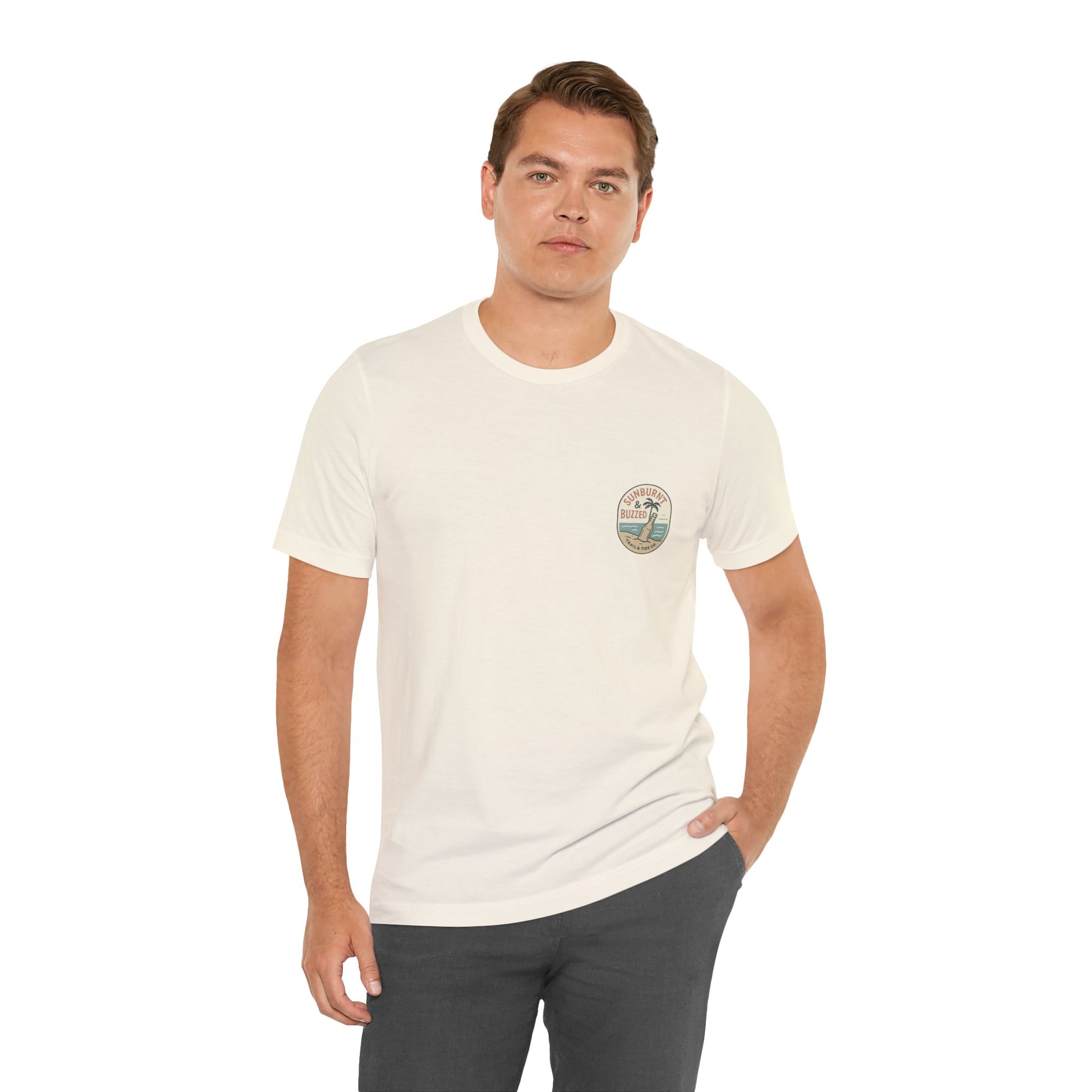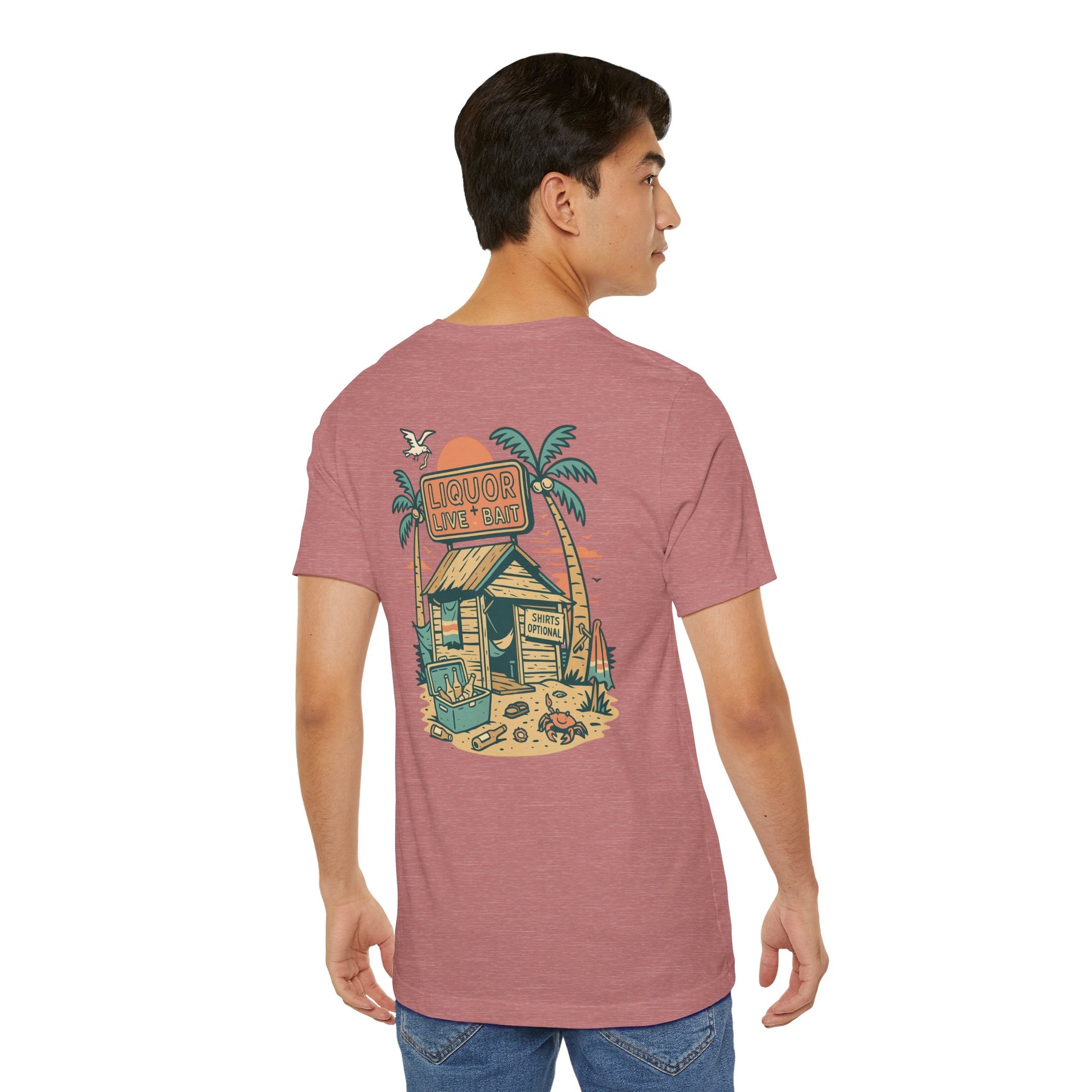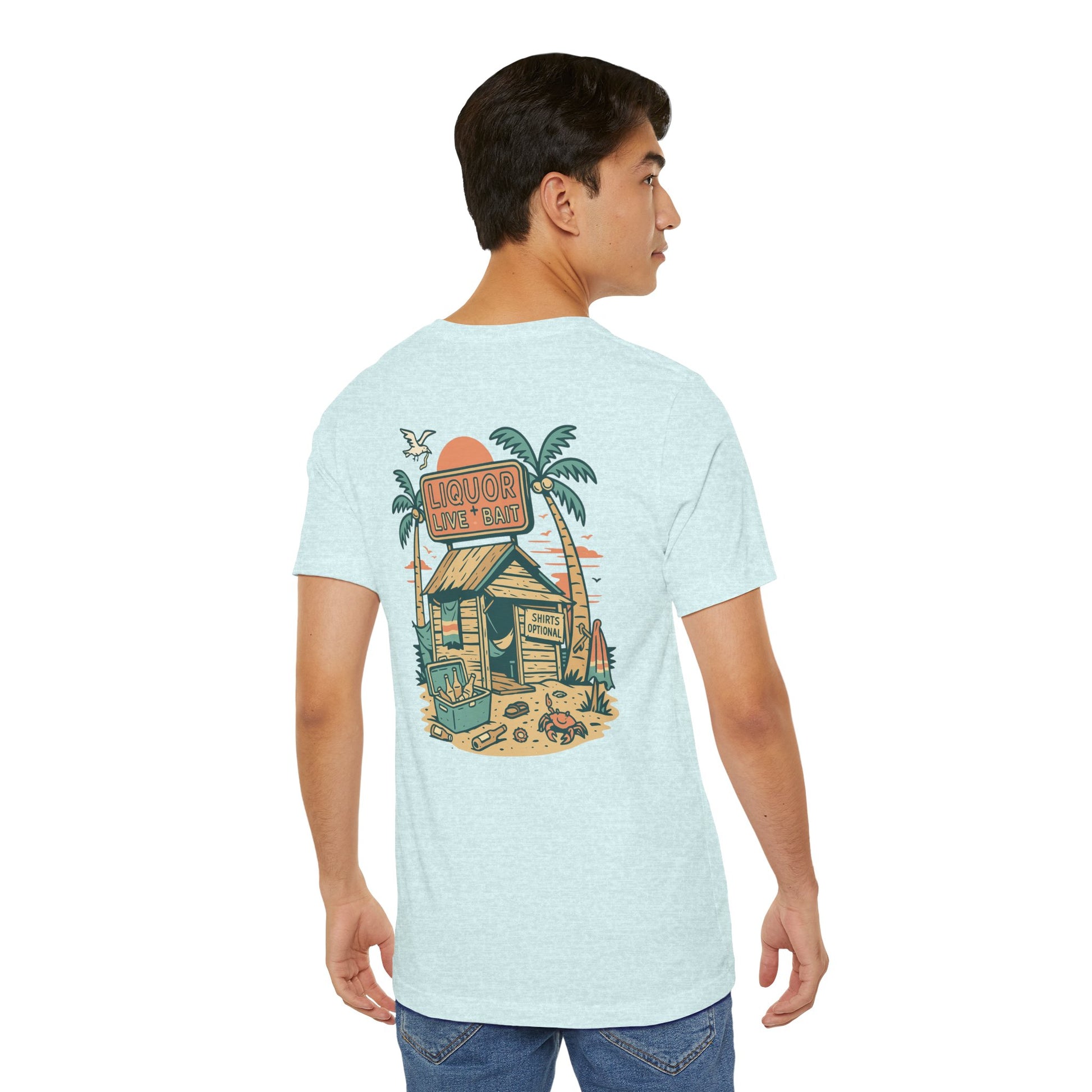 Whether you're stumbling into a beach bar or just dreaming of sandy sunsets, the Sunburnt & Buzzed Tee brings the party with you. This playful design features a laid-back tropical shack slinging “Liquor, Live Bait & Vibes,” complete with a crab, cooler, and an open-door policy—shirts optional. Perfect for sun-chasers, beer-lovers, and coastal drifters, it's a warm-weather statement that doesn't take itself too seriously.