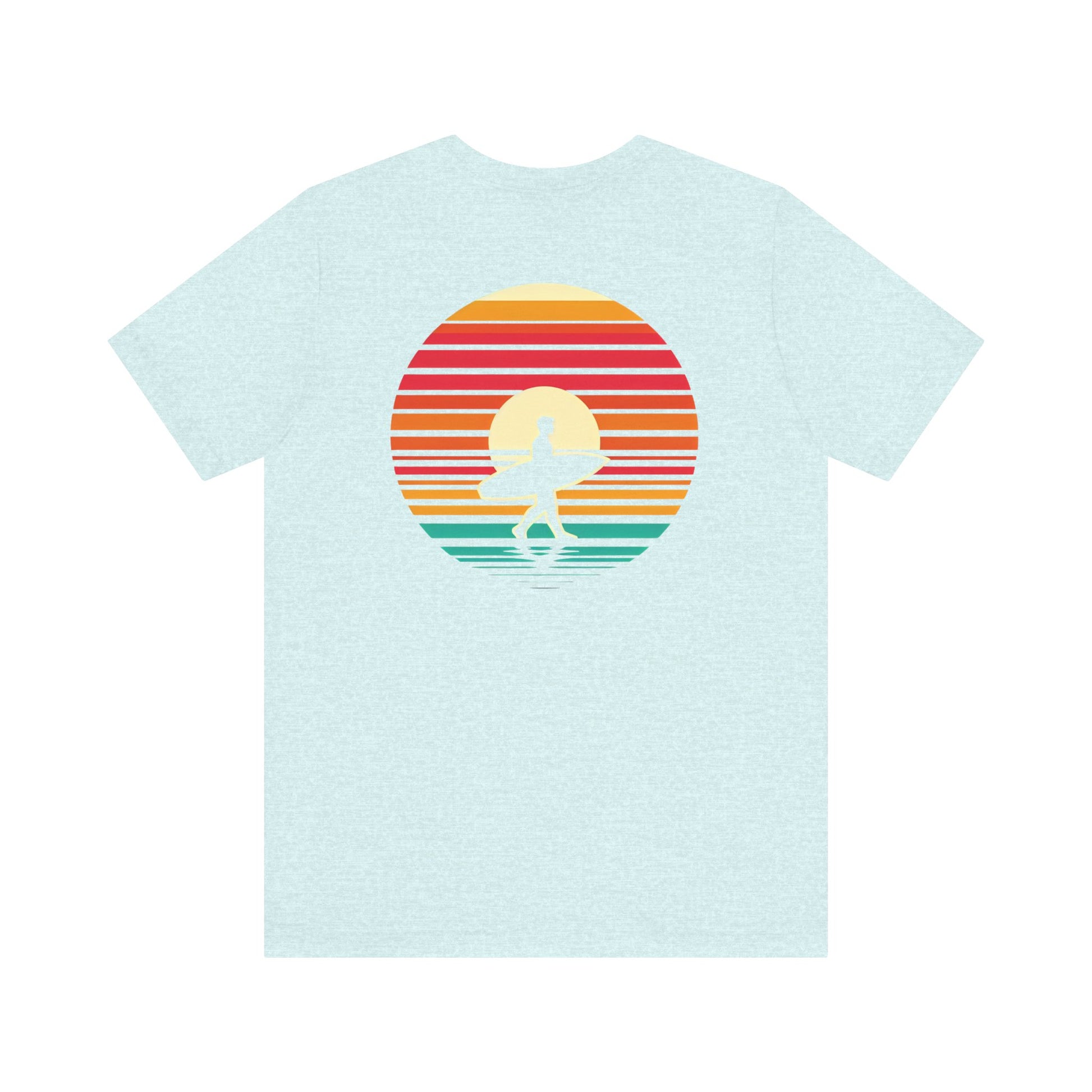 Sunset Surfer Tee | Retro Surf Silhouette with Bold Sunset Stripes - Beach Vibes Graphic Tee (BC3001)